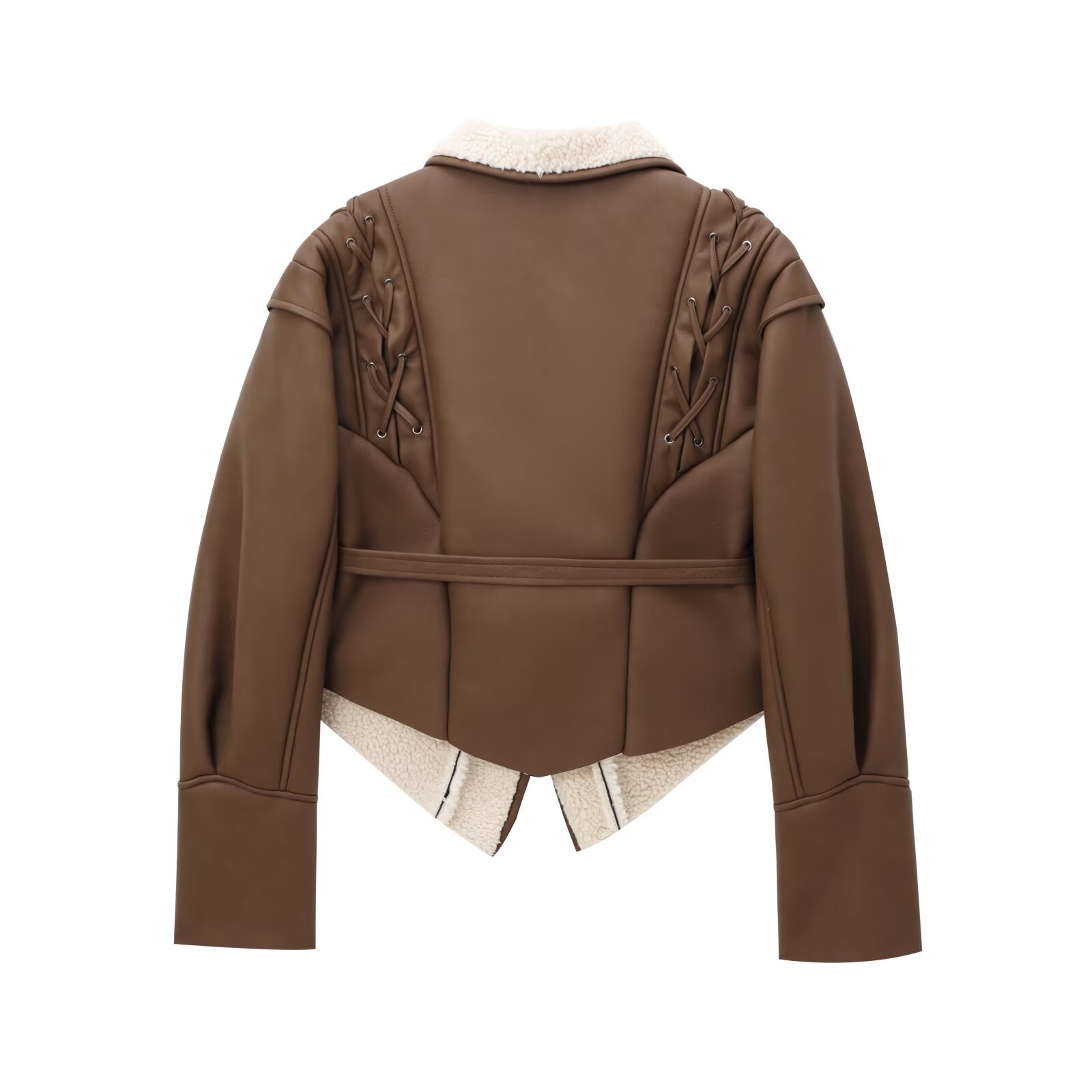 European and American style women’s clothing new French waist cinching slimming suede leather jacket with tie up jacket