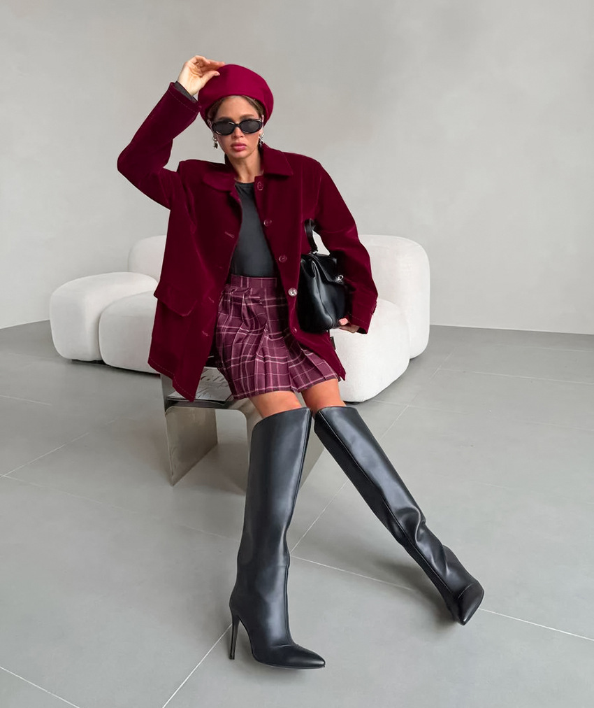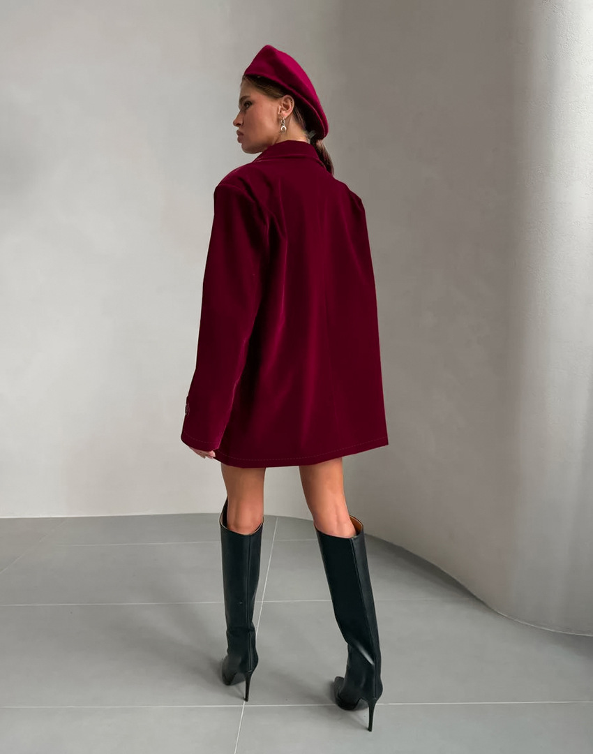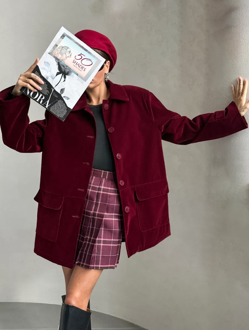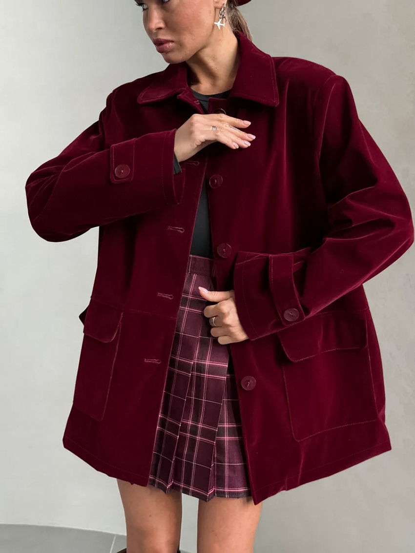 Velvet Jacket Women’s Retro Wine Red Coat High-end Women’s Clothing