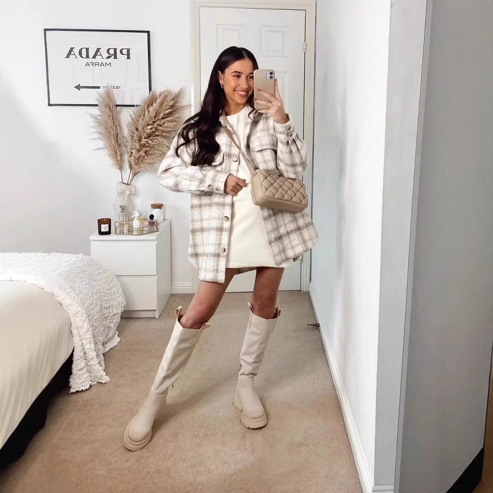Style: Elegant Lady Style Pattern Type: Plaid Sleeve Length: Long Sleeved Neckline: Half-Open Collar Fit Type: Loose Fit Material: Imitation Tweed Main Fabric Component: Polyester (Polyester Fiber) Thickness: Medium Color: Black Plaid, Apricot Plaid, Red Plaid Size: S, M, L Sleeve Type: Regular Sleeve Product Category: Women's Woolen Coat Unit: cm Size Chart S M L […]