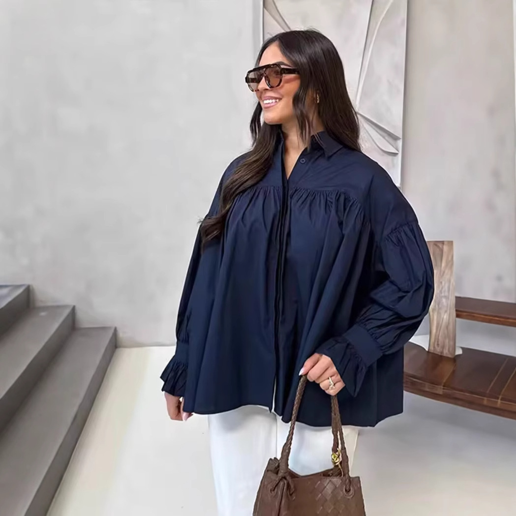 Be the first to review “Women’s Clothing Pleated Turn-down Collar Spliced Flare Sleeve Blouse”